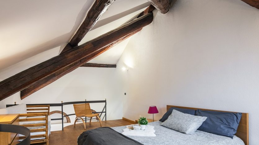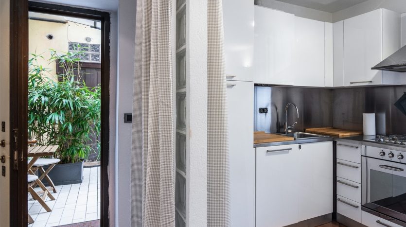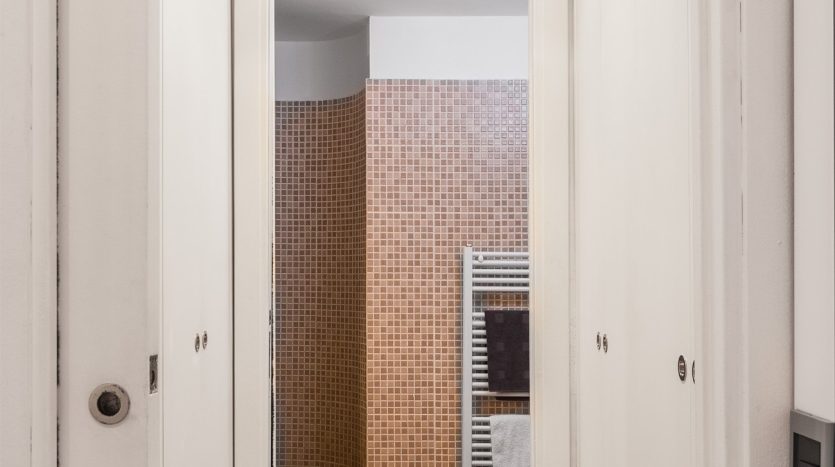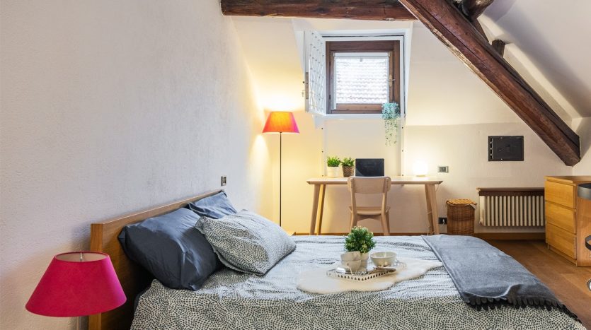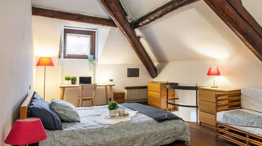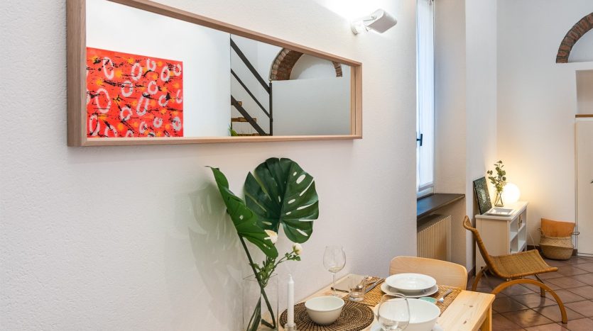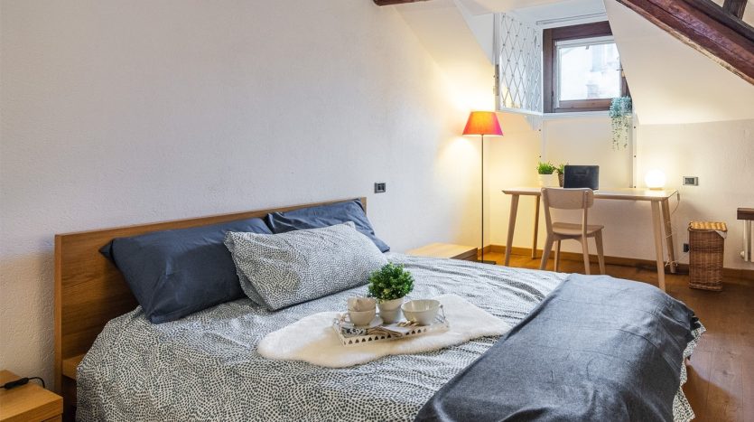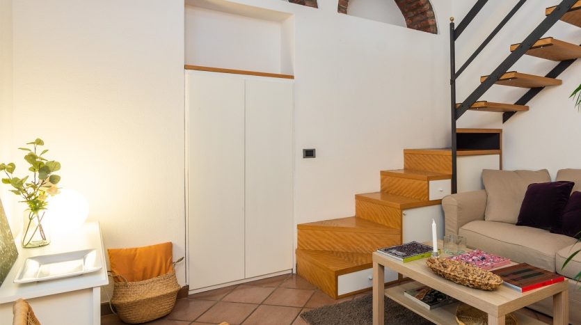 XXII MARZO: nei pressi di piazza Grandi, in delizioso stabile dei primi del Novecento, bellissimo bilocale posto al 4° nonché ultimo piano con ascensore e disposto su due livelli. L’appartamento, a cui si accede dal ballatoio comune che nei pressi dell’ingresso diviene un gradevole terrazzino, si compone di ingresso, cucina, antibagno attrezzato quale locale guardaroba/lavanderia e bellissimo bagno con finitura a mosaico, zona pranzo e salotto con scenografica scala/contenitore che conduce alla mansarda ove è collocata la camera da letto con angolo studio. La recente ristrutturazione ha saputo valorizzare le peculiarità dell’epoca di costruzione, conferendo comfort e sapore a questo bellissimo appartamento, la cui esposizione sulla corte interna garantisce luce e silenzio. Riscaldamento a radiatori e aria condizionata mediante split, entrambi autonomi. L’appartamento viene venduto completo degli arredi fissi.