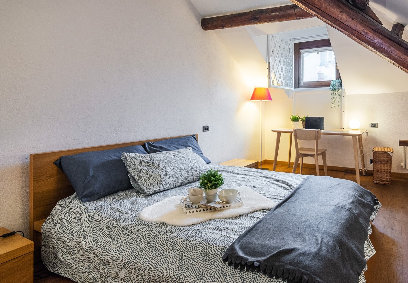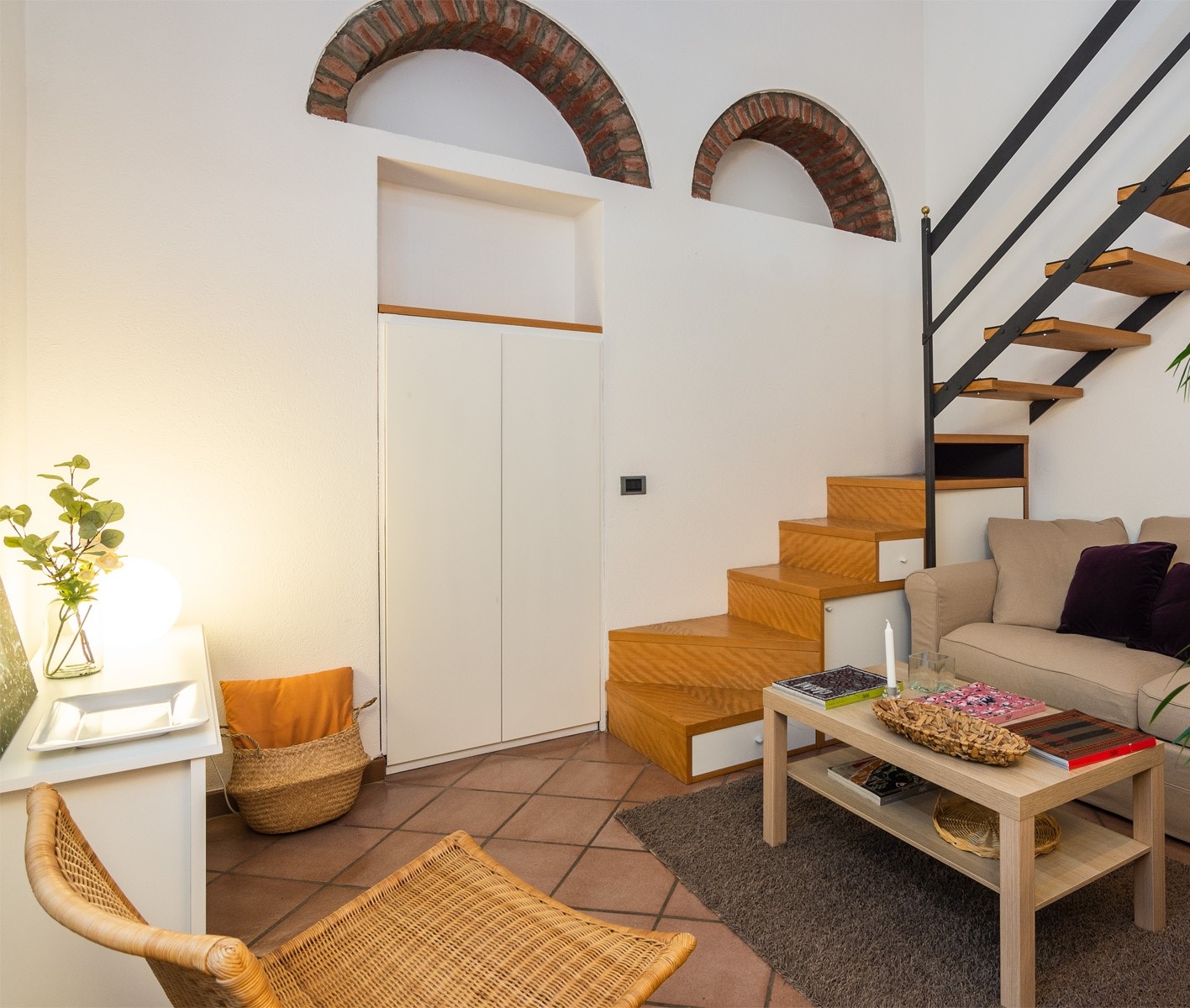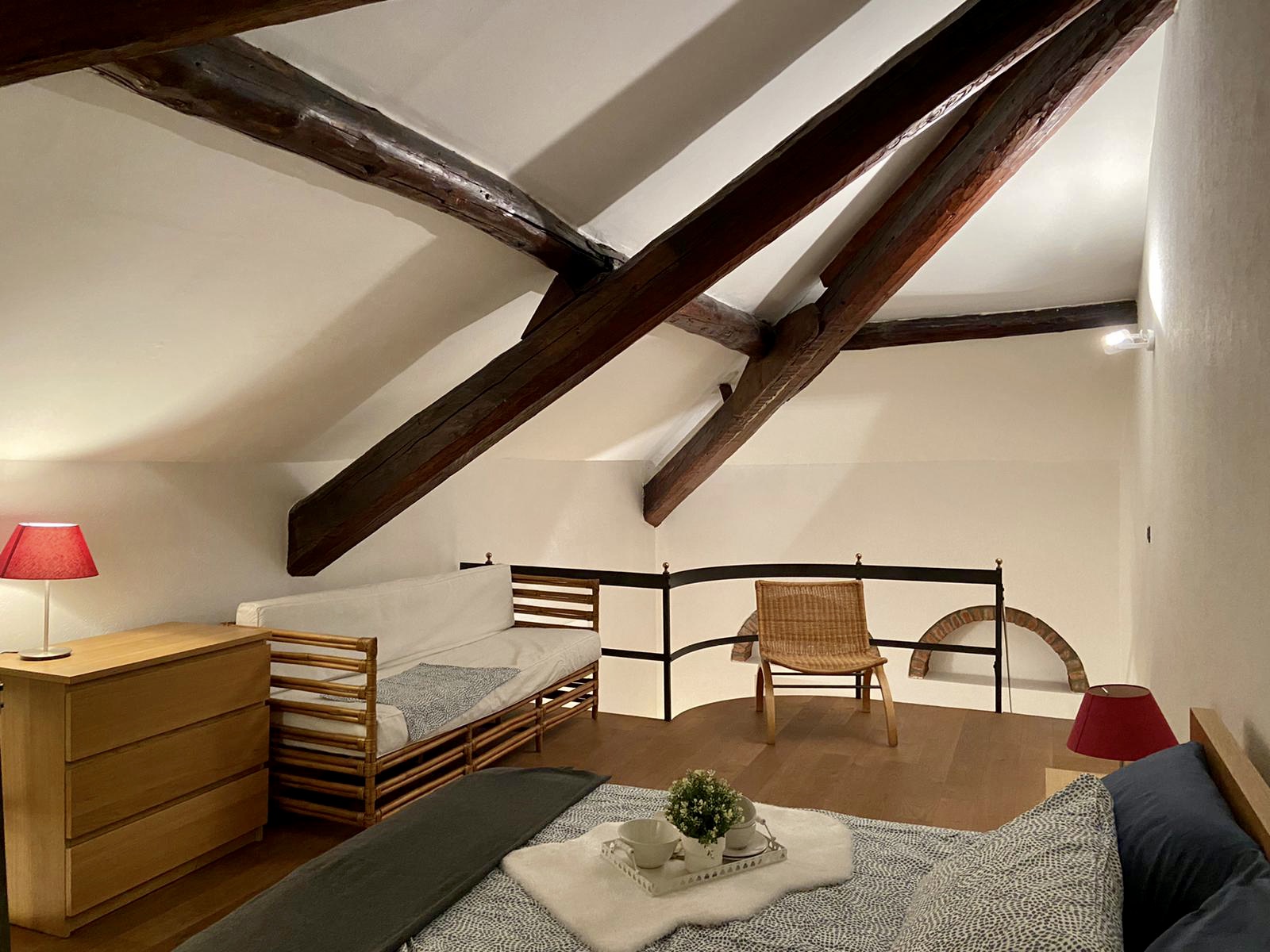 XXII MARZO: nei pressi di piazza Grandi, in delizioso stabile dei primi del Novecento, bellissimo bilocale posto al 4° nonché ultimo piano con ascensore e disposto su due livelli. L’appartamento, a cui si accede dal ballatoio comune che nei pressi dell’ingresso diviene un gradevole terrazzino, si compone di ingresso, cucina, antibagno attrezzato quale locale guardaroba/lavanderia e bellissimo bagno con finitura a mosaico, zona pranzo e salotto con scenografica scala/contenitore che conduce alla mansarda ove è collocata la camera da letto con angolo studio. La recente ristrutturazione ha saputo valorizzare le peculiarità dell’epoca di costruzione, conferendo comfort e sapore a questo bellissimo appartamento, la cui esposizione sulla corte interna garantisce luce e silenzio. Riscaldamento a radiatori e aria condizionata mediante split, entrambi autonomi. L’appartamento viene venduto completo degli arredi fissi.